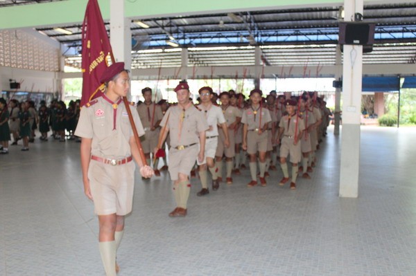 พิธีการทบทวนคำปฏิญาณและสวนสนามลูกเสือ เนื่องในวันคล้ายวันสถาปนาคณะลูกเสือแห่งชาติ วันที่ 1 กรกฎาค